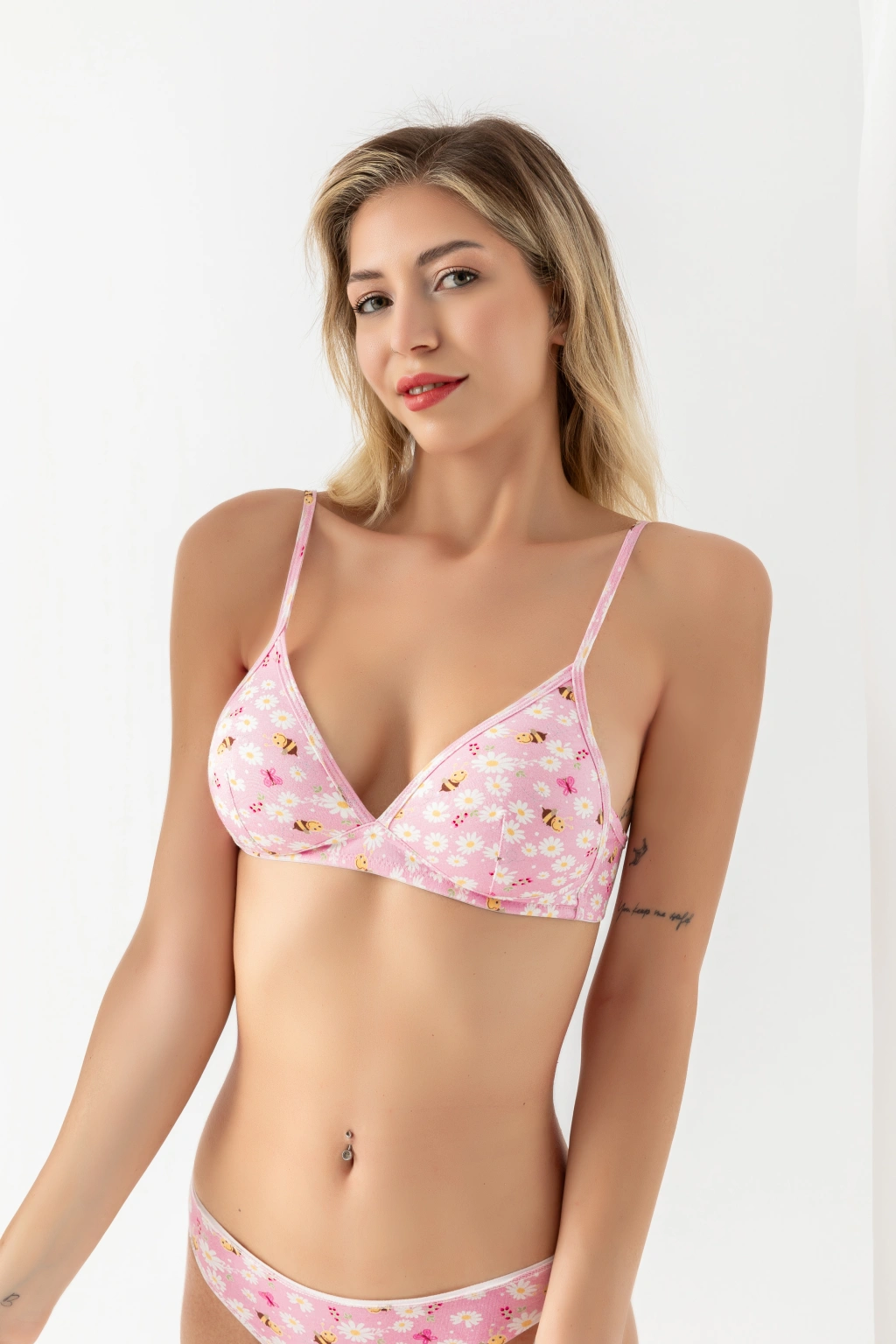 Günlük konforun şık bir yansıması olan bu üçgen sütyen, pamuklu penye kumaşı ile cildinizi nazikçe sarar. Telsiz ve dolgusu olmayan yapısıyla doğal bir görünüm sunarken, desenli tasarımı sayesinde klasik stillerden ayrışır. Günlük kullanıma uygun bu model, evde veya dışarıda rahatça tercih edebileceğiniz bir iç giyim alternatifidir.