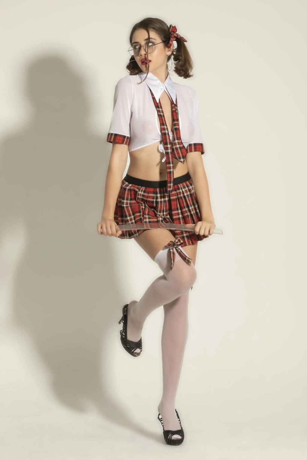 Klasik öğrenci teması, bu takımda transparan kumaşlar ve cüretkâr detaylarla yeniden yorumlanıyor. Şeffaf üst kısmı, mini ekose eteği ve tamamlayıcı aksesuarlarıyla bu takım, fantezi giyimin iddialı parçalarından biri. Özel gecelerde farklılık yaratmak ve partnerinizi etkilemek isteyenler için ideal.